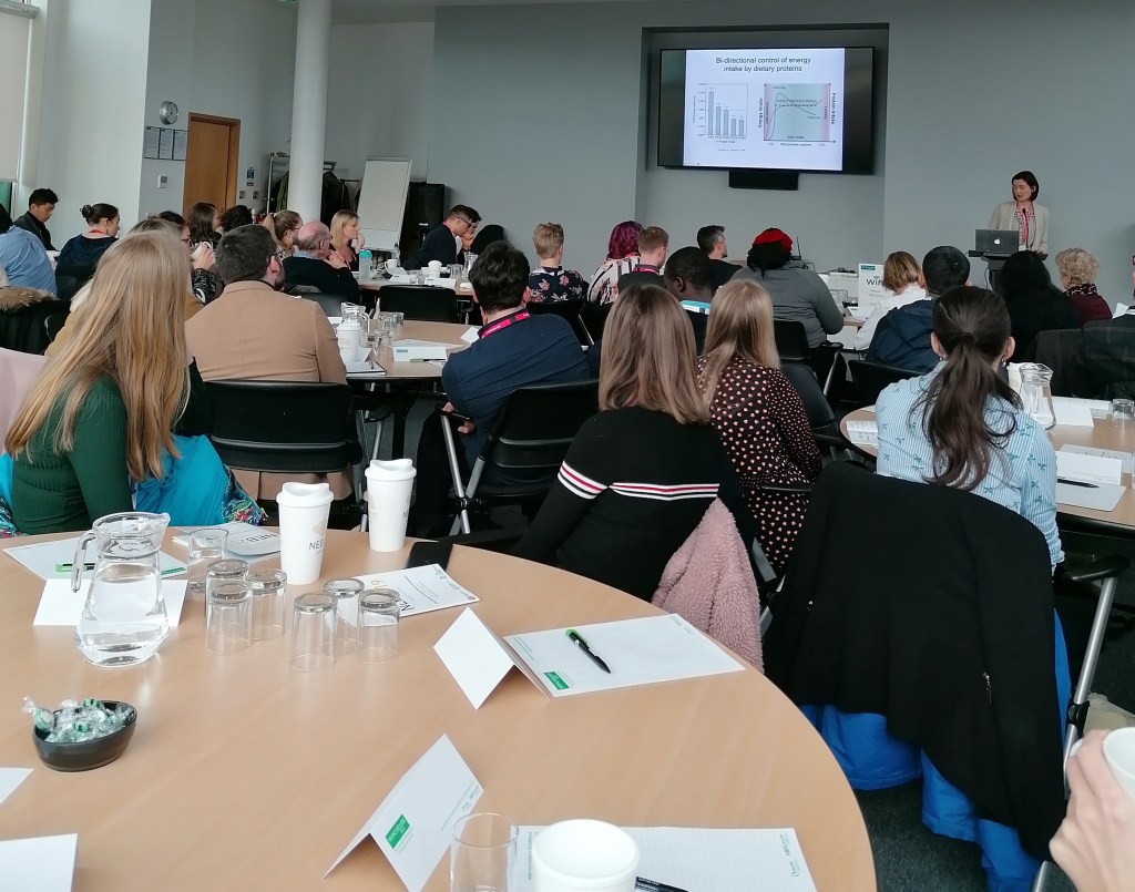 We had 7 ECR talks excellently delivered by a mix of PhD students and PostDocs, from 6 institutions across the UK. Together they took us on a whistle-stop tour of our collective field of research. We began the day hearing about neuronal control of glycaemia, the effects of maternal obesity on offspring metabolism and the control of torpor. We ended the day learning about the brain’s role in cancer therapy-induced anorexia, after stops along the way to discover how sleep and thermoregulation are linked to energy balance, and which regions of the brain are responsible for dietary choice. For me, I think the biggest indicator of the quality of the talks was that we still had a full room for our last talk at 5pm! The science was high-level, with some incredible cutting-edge techniques on show but there was something there for everyone to understand. I’m sure some of the undergraduates will have got lost at various points (I mean, I did on occasion and I’ve been in the field for 5 years!) but hopefully, something will have grabbed their interest. It would be nice to imagine that our event helped someone decide what they want their own research to focus on one day.