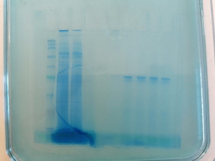 After a brief coffee break, we returned to the teaching laboratory finish off purifying our proteins and check our samples by SDS-PAGE. As the gels were running, we had lunch where we discussed many important topics such as the correct way to make a tuna sandwich (personally I prefer black pepper and lemon juice with red onion). We briefly returned to the lab to put the gels into staining solution before returning to the lecture theatre.